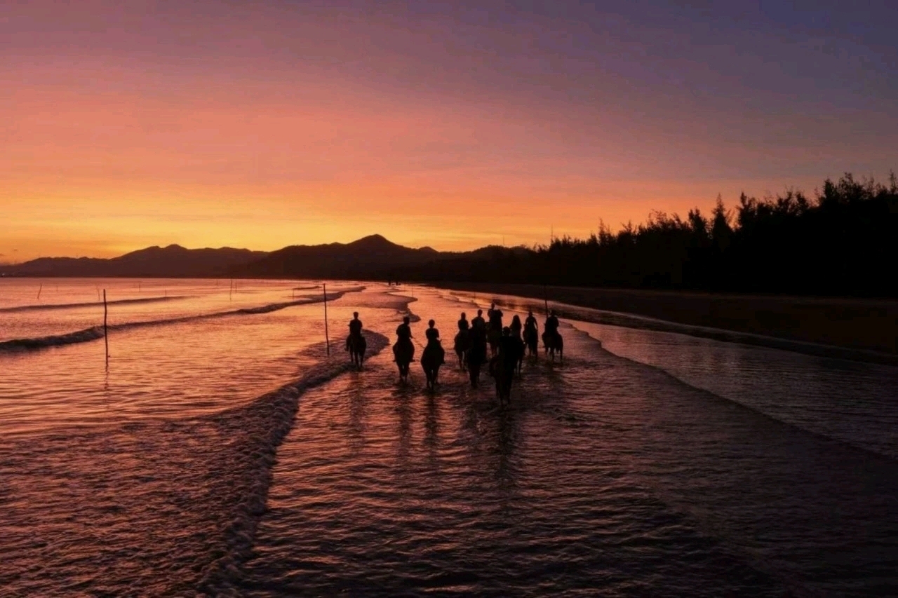 滨海踏浪纵马欢,不负新年好风光。鲘门街道排角村沙滩的深圳星辰马术俱乐部(玉海湾度假村内),12公里海岸线旁,骏马踏沙而行,浪花轻吻脚踝。在这里,可以踏着细软的沙滩,听着海浪的声音,感受海风拂面,与马匹一同在广阔的海岸线上自由驰骋。马年策马启新程,把一年的疲惫都交给山海,让新年的欢喜在天地间肆意蔓延。